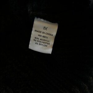 Classic meets cozy in this black cable knit sweater vest, women’s size 1X. Designed with chunky cable texture, wide open arm holes, ribbed trim, and a soft, slightly fuzzy feel — perfect for layering over blouses, turtlenecks, or dresses. A versatile wardrobe piece that transitions easily through the seasons.