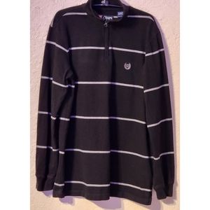 CHAPS Men's Pull Over Polo Shirt 1/4 Zip Long Sleeves Black & Gray Strip…