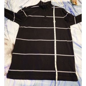 CHAPS Men's Pull Over Polo Shirt 1/4 Zip Long Sleeves Black & Gray Stripes