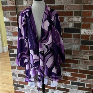 Shein Curve kimono ruffled purple, white & black kimono blouse with front tie that knots at breastline. Oversized half length wide sleeves. Perfect for layering. 100.% polyester. Size 3XL.