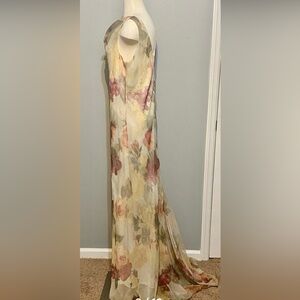 Vintage Jeffery & Dara Evening by Tom Barra Long Elegant Cream Floral Maxi Sz 16