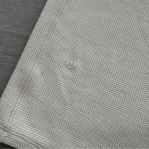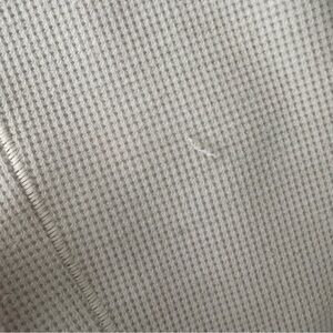 Heathered white opal. Good condition. Occasional pulled threads throughout due to fabric