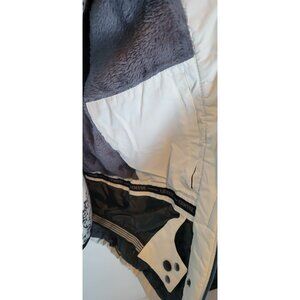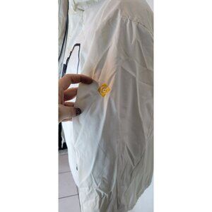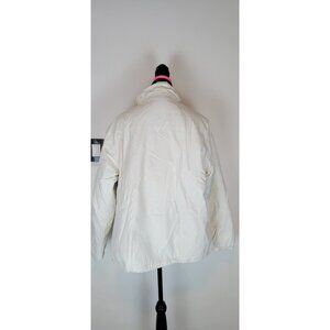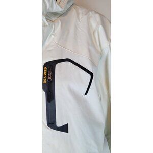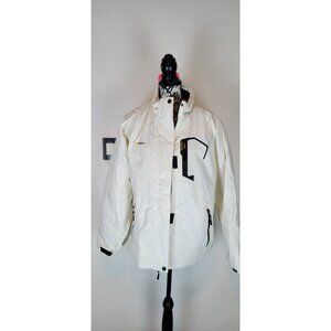 Stay warm and stylish in this Women's Waterproof Ski Snow Jacket by Gemyse. Made with polyester outer shell material and lined with cozy fleece, this jacket is perfect for winter, fall, and spring seasons. The jacket features a full zip closure, removable hood, and multiple zipped pockets for convenience. With a sleek white solid color and a mid-length design, this jacket is ideal for outdoor activities such as skiing, hiking, or casual everyday wear. Machine washable and windproof, this jacket combines functionality with a classic sporty look, making it a versatile addition to your wardrobe.This item is new, unused, and has been stored for a while. It comes with a detail, please see the photo. With a blue circle.