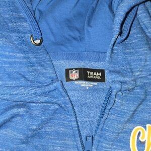 Blue hoodie featuring Los Angeles Chargers logo and text. Perfect for fans. Brand New with Tags. Womans Small