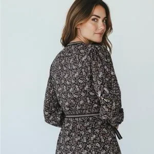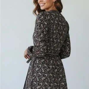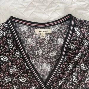 Max Studio Black Floral Wrap Midi Dress size S small new