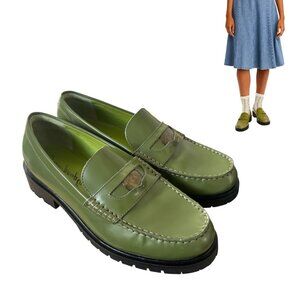 FREE PEOPLE GREEN LEATHER CHUNKY PENNY LOAFERS SIZE 8/38 LIKE NEW