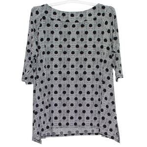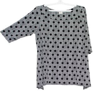 Chicos Tunic Top 3/4 Sleeve Polka Dot Minimalist Workwear Black White 3 XL 16