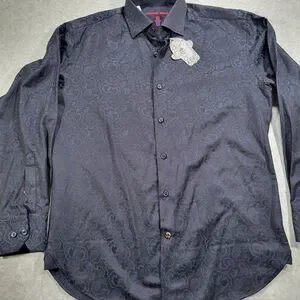 Luchiano Visconti Black Men's Small Navy on Black Long Sleeve Paisley Shirt