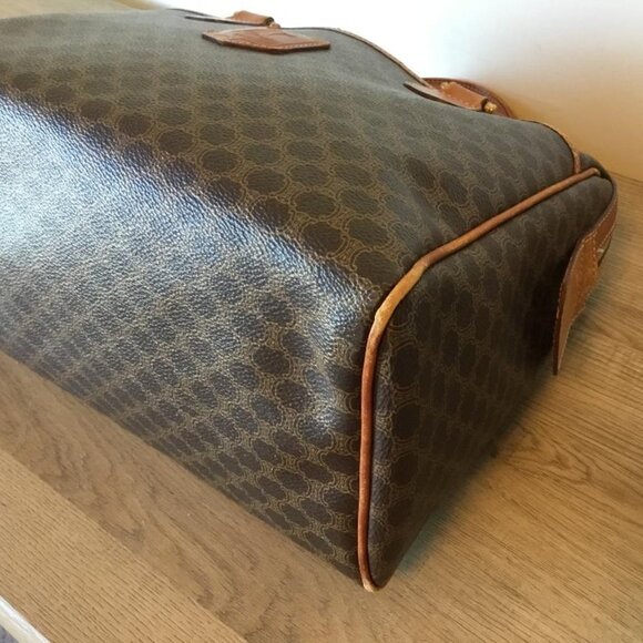 Vintage Celine Macadam Boston Bag Brown Coated Canvas, Leather Trim RARE FIND