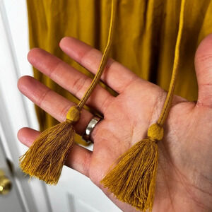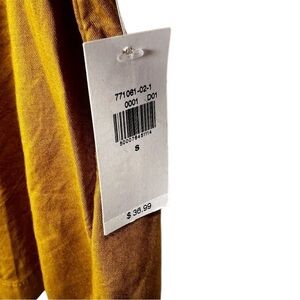 New with tags Old Navy boho-style peasant blouse in a warm mustard yellow, size Small. Features long sleeves with gathered cuffs, tie-front neckline, and flowy relaxed fit. Perfect for pairing with denim shorts, jeans, or layering under a cozy cardigan for fall.