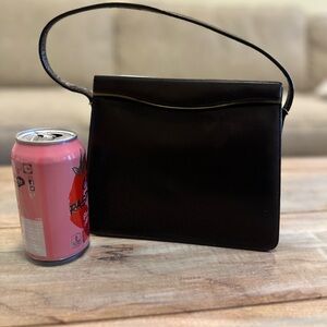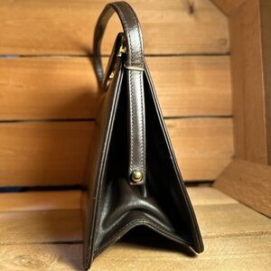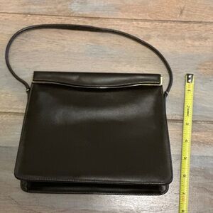This antique elegant dark brown genuine leather Etra satchel, with gold clasp and interior zipper compartment-is a must-have for any fashion-forward wardrobe. Its timeless design and versatile color make it ideal for any occasion.