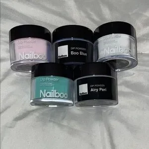 Explore vibrant nail art with the Nailboo Dip Powder Kit. Includes shades like Aurora Glaze and Boo Blue for stunning nails. Perfect for creative manicures.