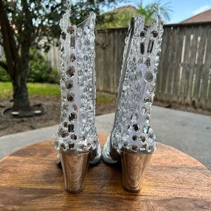 Azalea Wang Western Rhinestoned Silver Ankle Booties Size 8.5