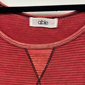 Able Women's Burgundy Long Sleeve Top with Patterned Cuffs M