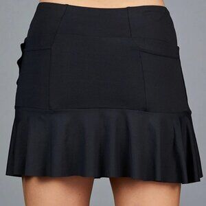 NEW Denise Cronwall MEDIUM Vespa Midi Flounce Ruffle Wrap Skort 15" BLACK
