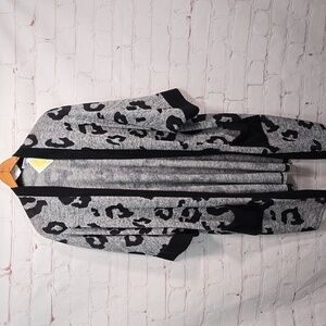 WHITE BIRCH Grey Leopard Print Cardigan Open Front Womens Size XL NWT