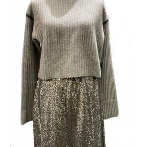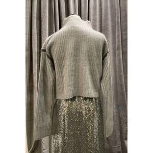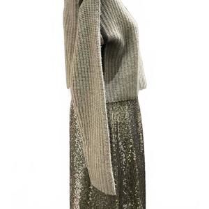 NEW BRAZEAU TRICOT women's cashmere soba funnel neck sweater in steel
