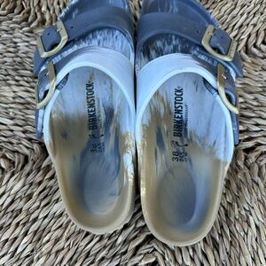 Chic Birkenstock sandals with a gradient design. Features dual adjustable straps and cushioned footbed.