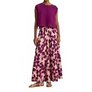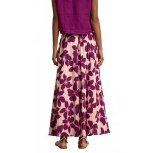Introducing the Jess Skirt by Velvet by Graham & Spencer, a perfect addition to your spring wardrobe in a vibrant berry hue. This women's maxi skirt boasts a flowy silhouette crafted from 100% cotton with a floral pattern. Designed for comfortable wear, it features an elastic pull-on waist, is fully lined, and offers side seam pockets for added functionality. Made in India, this skirt is easy to care for with machine wash instructions.