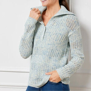 Talbots Open Stitch Sailor Collar Sweater Cotton Beachy Coastal Grandma Medium