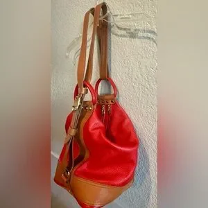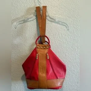RARE Valentina Sling Backpack Real Finest Italian Red Leather Convertible Bag