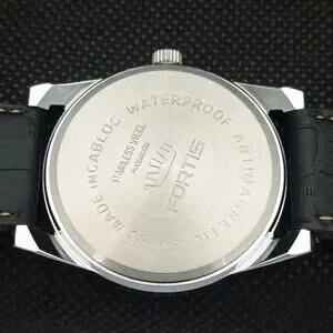 Vintage 1976 Fortis Manual Mens Silver Watch W/Leather Strap & Red accents