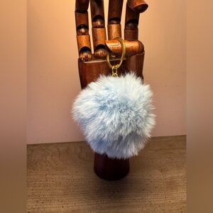 Add a touch of fun to your accessories with this light blue fluffy keychain. Perfect for adding a playful element to your bag or keys.