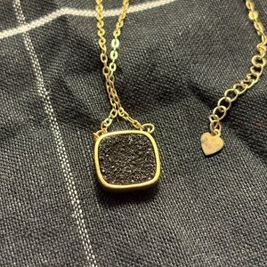 This elegant gold plated pendant necklace from Elise M with black crystal drusy adds a touch of sophistication to any outfit.