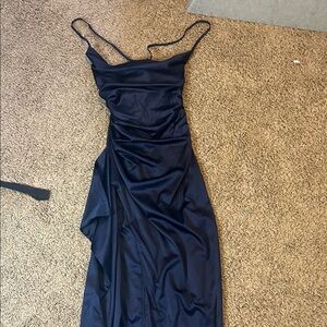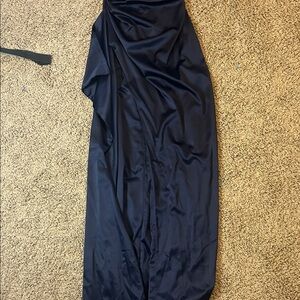 This stunning navy blue satin dress is perfect for any special occasion. Its sleek design and luxurious fabric offer a sophisticated look. Ideal for evening events or formal gatherings.