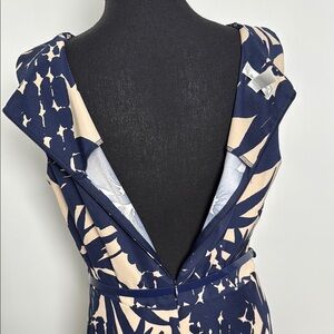 Dress Barn Women Midi Dress Blue and Cream Sleeveless A-line Office Career