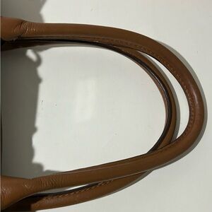 Elegant brown leather handbag with gold accents, perfect for any occasion.
