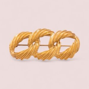 Napier, brooch, yellow gold, 90s, braided, three circles, signed, vintage, estate.