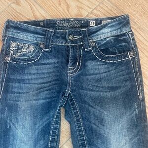 Chic and stylish Miss Me skinny jeans. Dark blue hue for versatile wear.