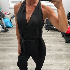 Lulus In the City Black Surplice Sleeveless Jumpsuit