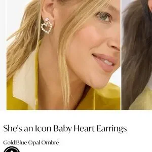 NWT Melinda, Maria she’s a icon Gold Blue Opal Heart Earrings