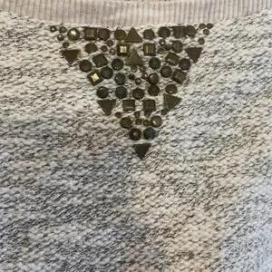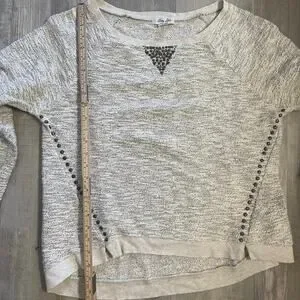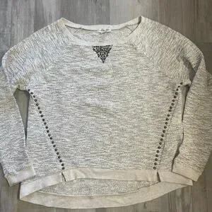 Lucky Lotus Sweater Beige metallic Knit Pullover Embellished Studded Ladies Sz L