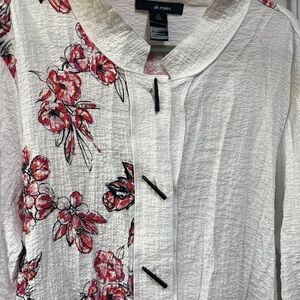 Ali Miles White Floral Pattern Size XL Tunic Top Lagenlook Artsy
