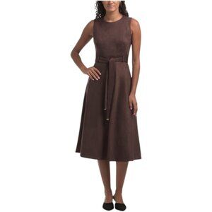CALVIN KLEIN Faux Suede Belted Midi Dress