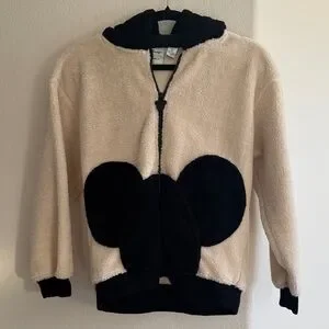 Charming Disney hoodie in cream with black accents. Features playful mouse ears and a Mickey design in front. Kids 11/12.