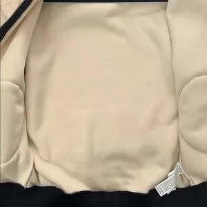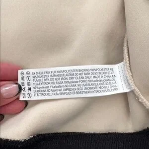 Faux fur with polyester lining. Only worn a few times and in great condition. Small signs of wear/piling on the hood as shown. Thanks for looking!