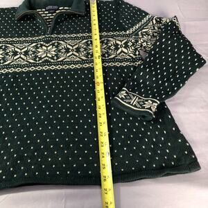 Vintage Nordic Snowflake 1/4 Zip Pullover Sweater Land's End Large Forest Green