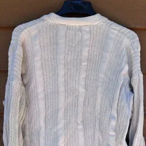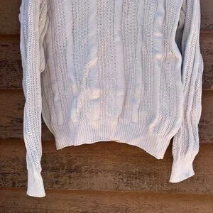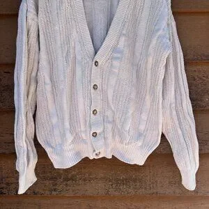 Vintage Oakton Limited L Tall White 100% Cotton Button-Up Cardigan Sweater With