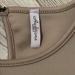 Sexy top tan and black. Fake leather. Pretty design and flattering. Size small