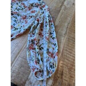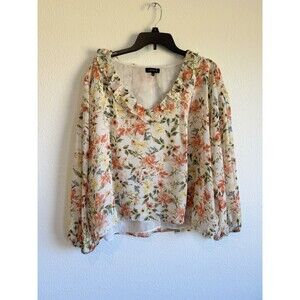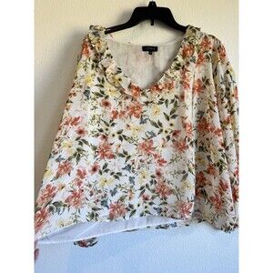 1 State Women's Floral V Neck Blouse Long Sleeve Ruffle Accent Lined XL