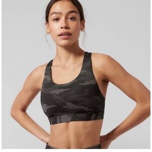Athleta Interval Sports Bra in Dark Green Camo. Large