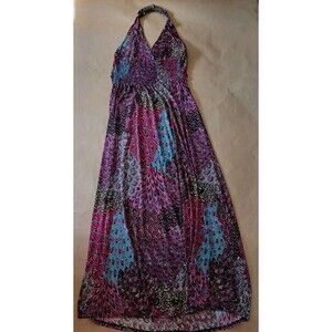 Shoreline Maxi Dress Womens L/XL Halter Smocked Back Pink Paisley Beach Artsy