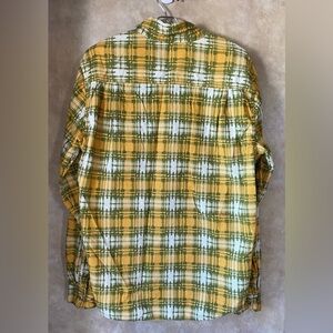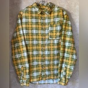 Stylish yellow and green plaid button-up shirt. Features a classic collar and front pocket. In good used condition with tons of life left. Maybe worn twice. No apparent flaws.