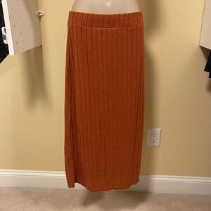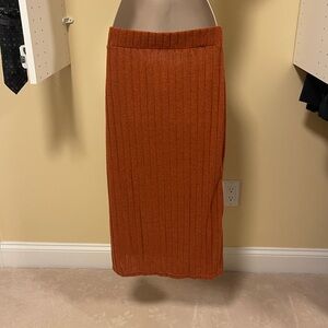NWOT-Elevate your style with this chic ribbed knit skirt. Featuring a vibrant rust orange hue, it's perfect for any occasion. Soft and stretchy for a comfortable fit. Pair it with your favorite top for a stunning look. Tags taken off but never worn.