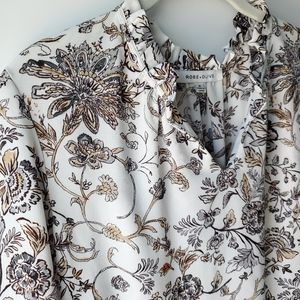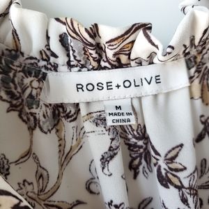 Rose + Olive Women's Blouse Long Sleeve Floral Cream Lightweight Size Medium