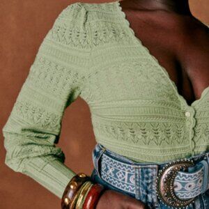 This listing is for the Sezane Charlotte Cardigan in the color Almond. It is an almond / pistachio color.